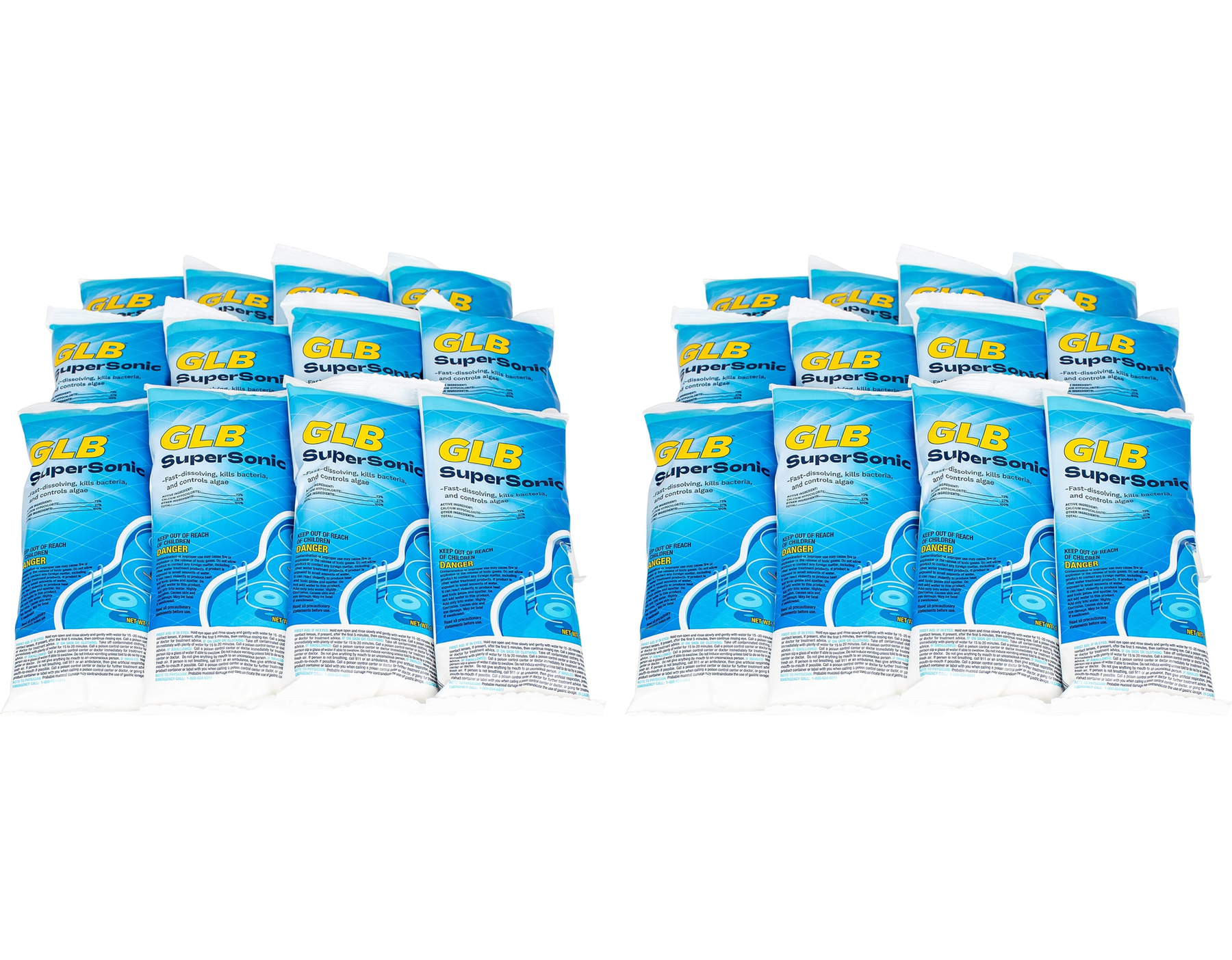 The GLB Supersonic Pool Shock 24 Pack Case is designed for high-demand water treatment — giving you the power, volume, and consistency needed to fully restore and maintain crystal-clear pool water.