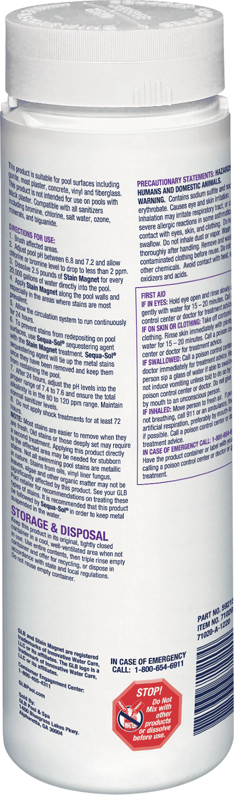 This granular formula quickly eliminates metallic stains from pool surfaces with no need to test the water or close the pool.
