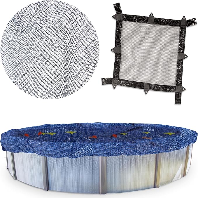 Protect your 30' round above-ground pool with the Swimline Leaf Net Above Ground Pool Cover CO930. Designed with a 3' overlap, this black mesh cover allows water to pass through while blocking leaves and debris. The lightweight yet durable woven material includes a winch-tightening cable for secure installation. Backed by an 8-year warranty, it's ideal for simplifying seasonal cleanup and extending the life of your pool cover.